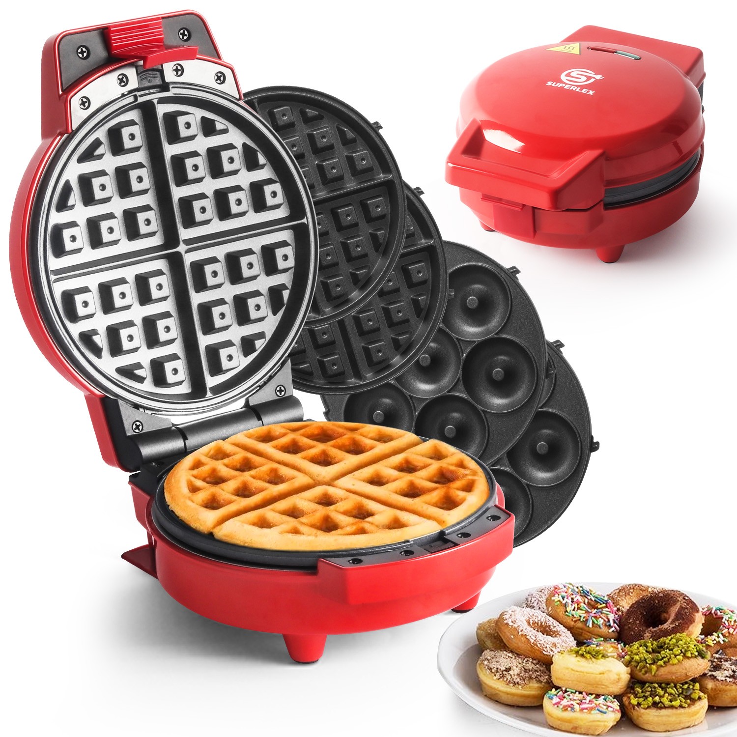 SUPERLEX 3 in 1 Mini Waffle Maker Omelette Maker Non-Stick Removable Plates 600W