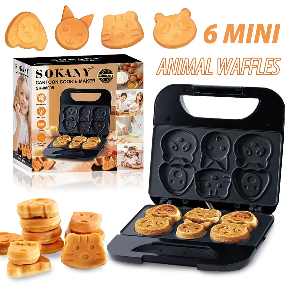 Animal Mini Waffle Maker 6 Animal Shaped Pancakes Breakfast Machine Non-Stick Wa