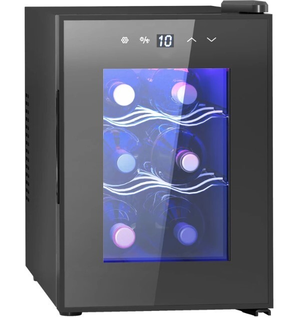Mini Wine Fridge 2Racks Storage Organizer 6Bottle Triple Glass Door Touch Screen