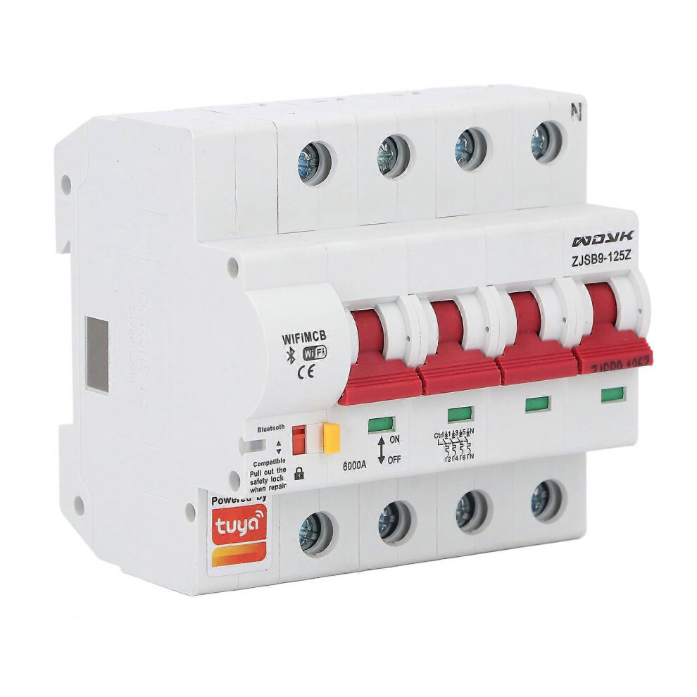 (As show, One size) 4P Miniature Circuit Breaker Smartphone APP Remote Control Switch for Tuya Smart WiFi Bluetooth Circuit Breaker 100A AC110V130V