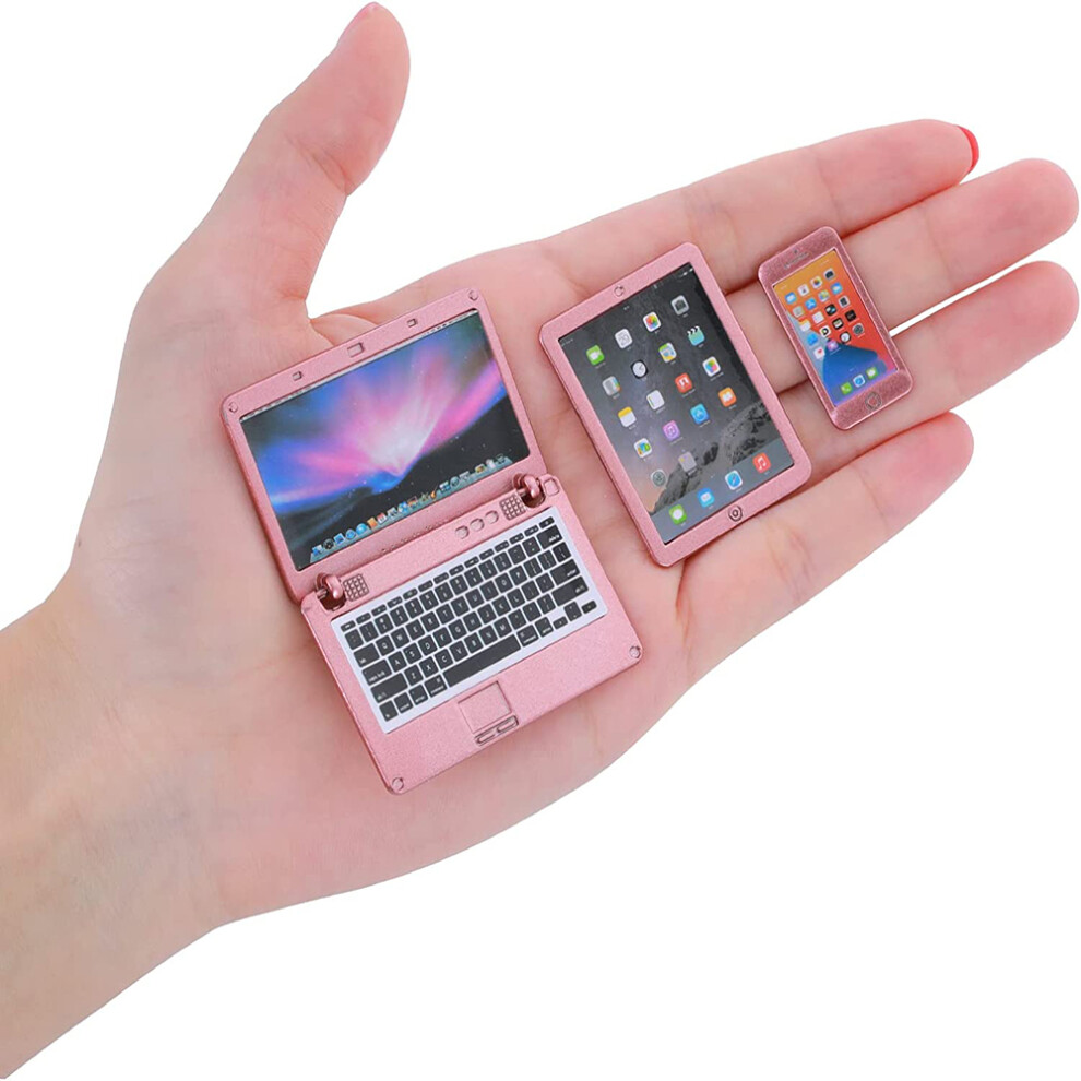 Simulation Electronics for Dollhouses, Educational Toys 1:12 Scale Mini Laptop Tablet and Smartphone Set, Metal Alloy Miniature Accessories with