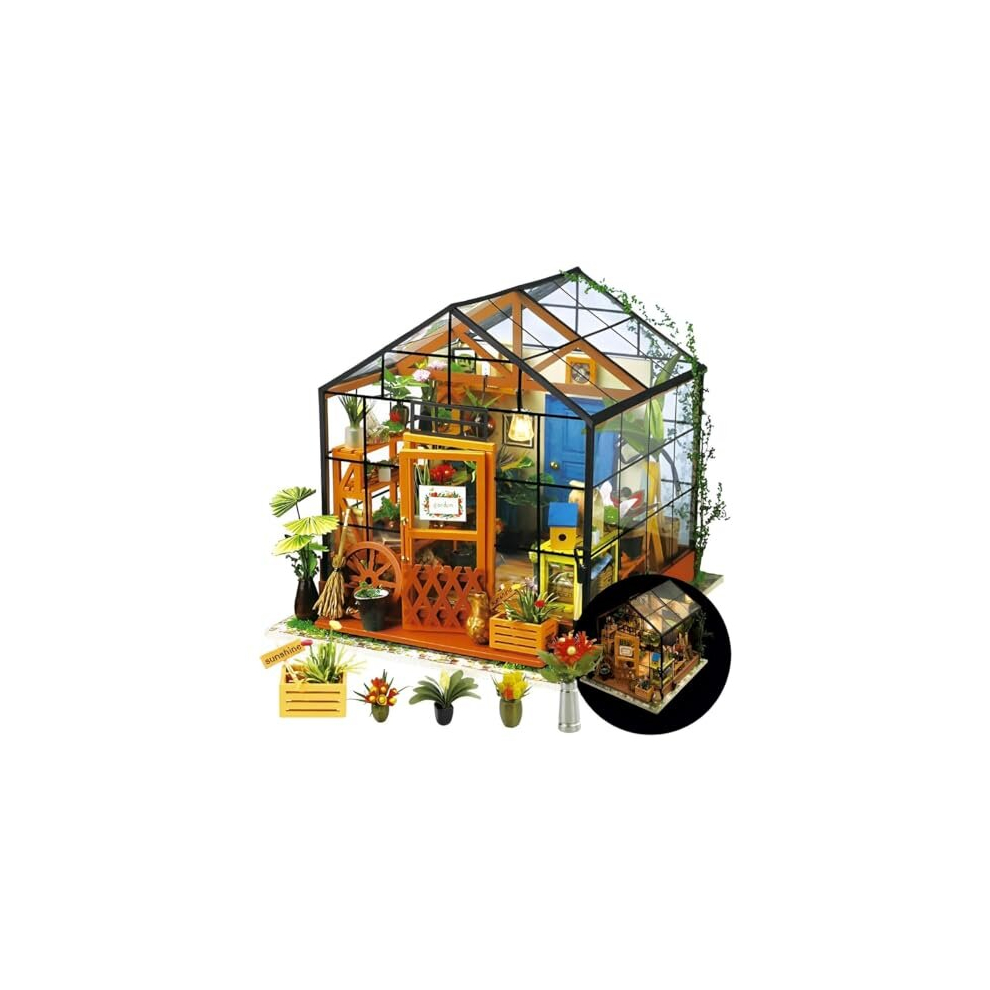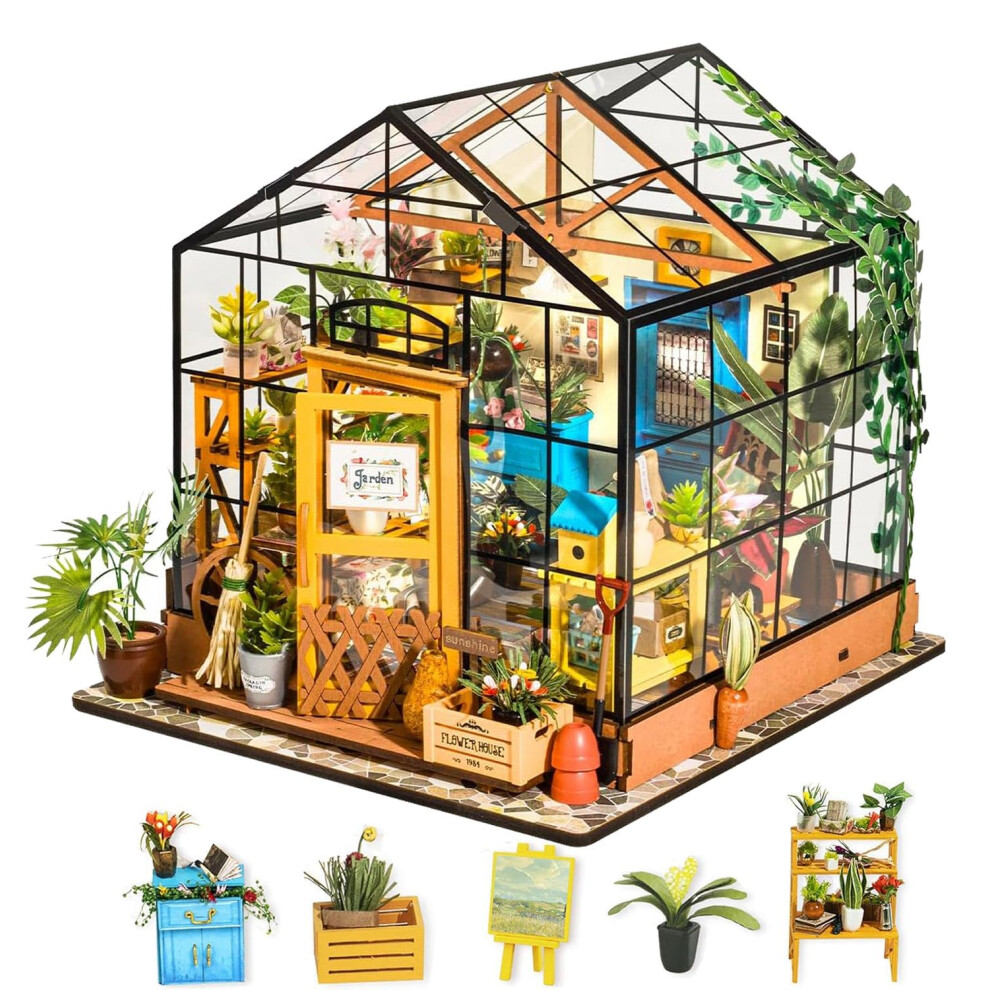 Rolife DIY Wooden Dollhouse Miniature 3d Greenhouse Kit Craft Kits For Adults Birthday for Women and Girls (Cathy's Flower House)
