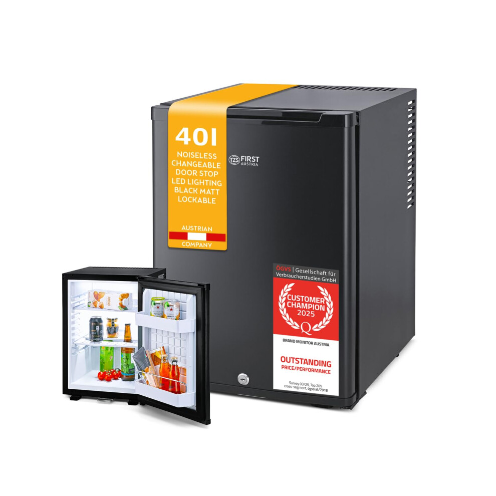 TZS First Austria - Mini fridge 40L silent & lockable - Small Minifridge, with