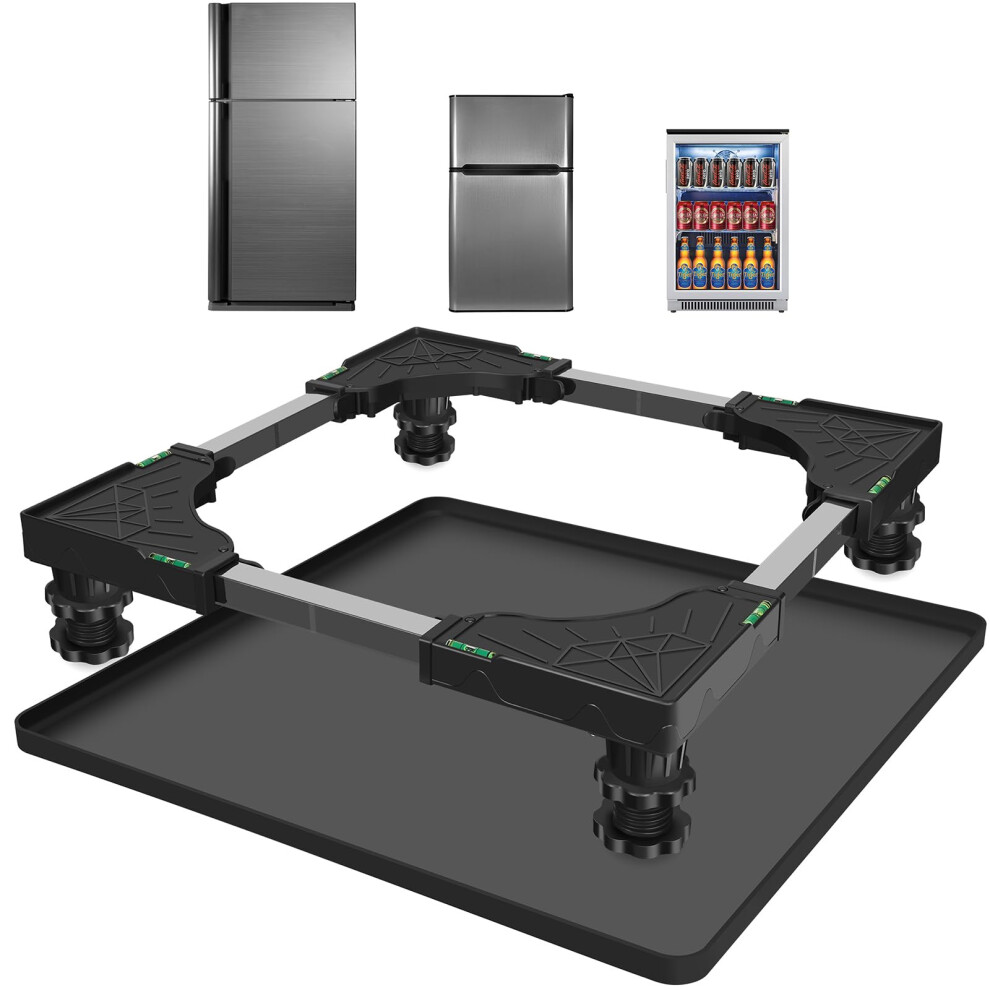 Mini Fridge Stand with Silicone Mat Universal Stand Base is Adjustable 4 Sturdy Feet and Hardened Steel Tube 24''x 24'' Drain Pan Suitable for Fri