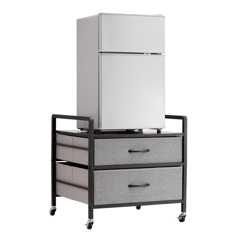VEVOR Mini Fridge Stand with Storage 176 lb-Capacity Mini Fridge Table with 2 Drawers & 4 Swivel Wheels Mobile Mini Fridge Shelf Gray Mini Fridge