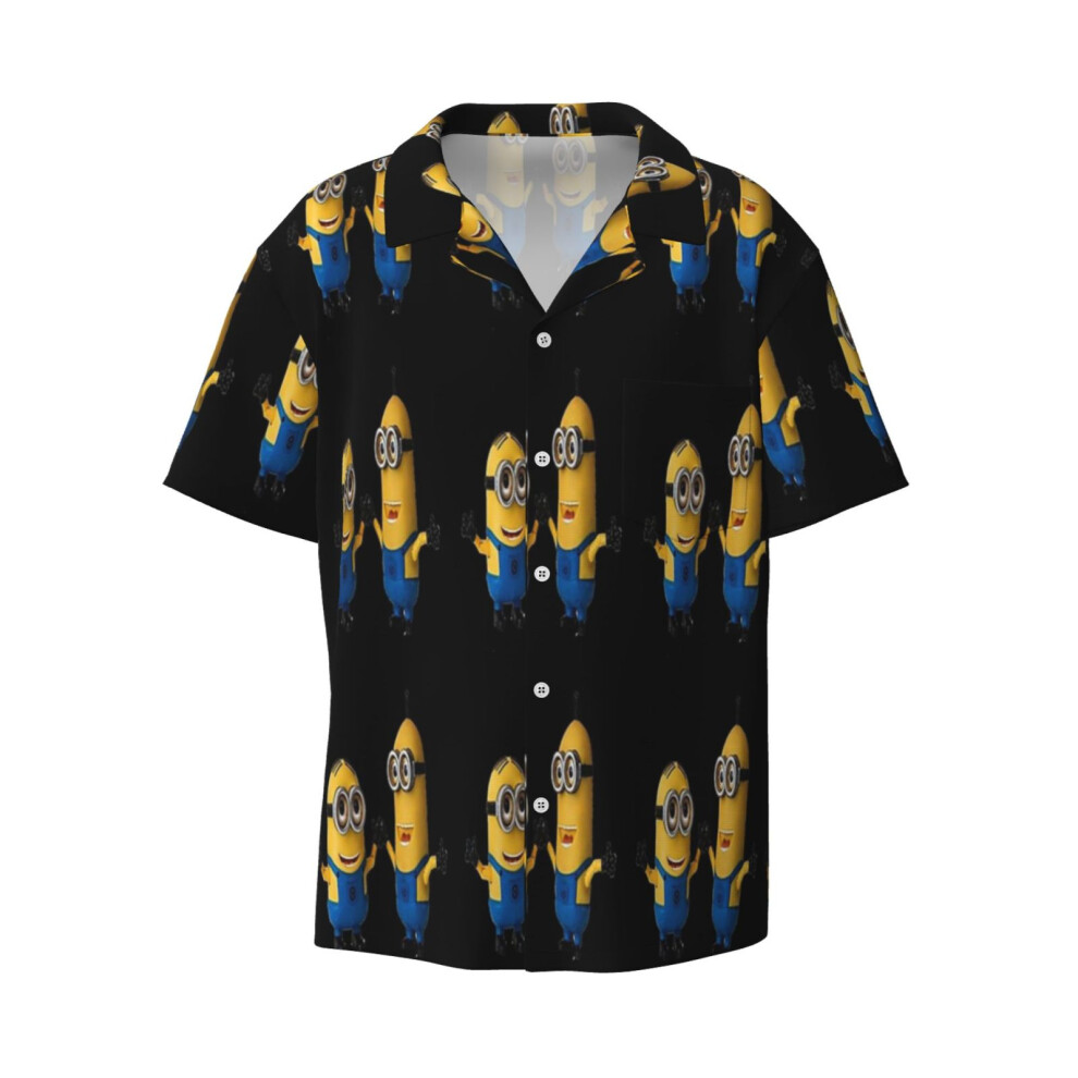 (DANCING DAVE MINION,MINION TIM DESPICABLE ME WITH CUTE AND FUNNY SMILE_5369) Men's Hawaiian Shirts Cuban Collar Vintage Bowling Short Sleeve Button D