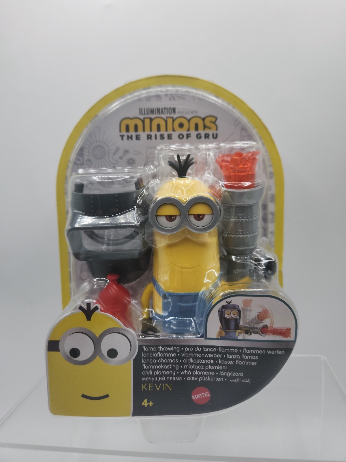 Minions: The Rise of Gru Cheese Blaster Kevin Action Figure Approx 4-in, Movie Character Toy with Blaster & Dual Button-Activated Motion, Gift for Kids Ages 4 Years & Older