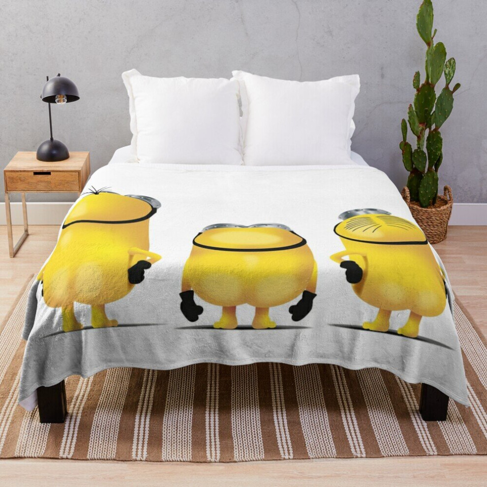 Fleece Throw Blanket Minions - Kevin, Bob, Stuart (Full) for Sofa Couch Kids 60 x 50 Inches