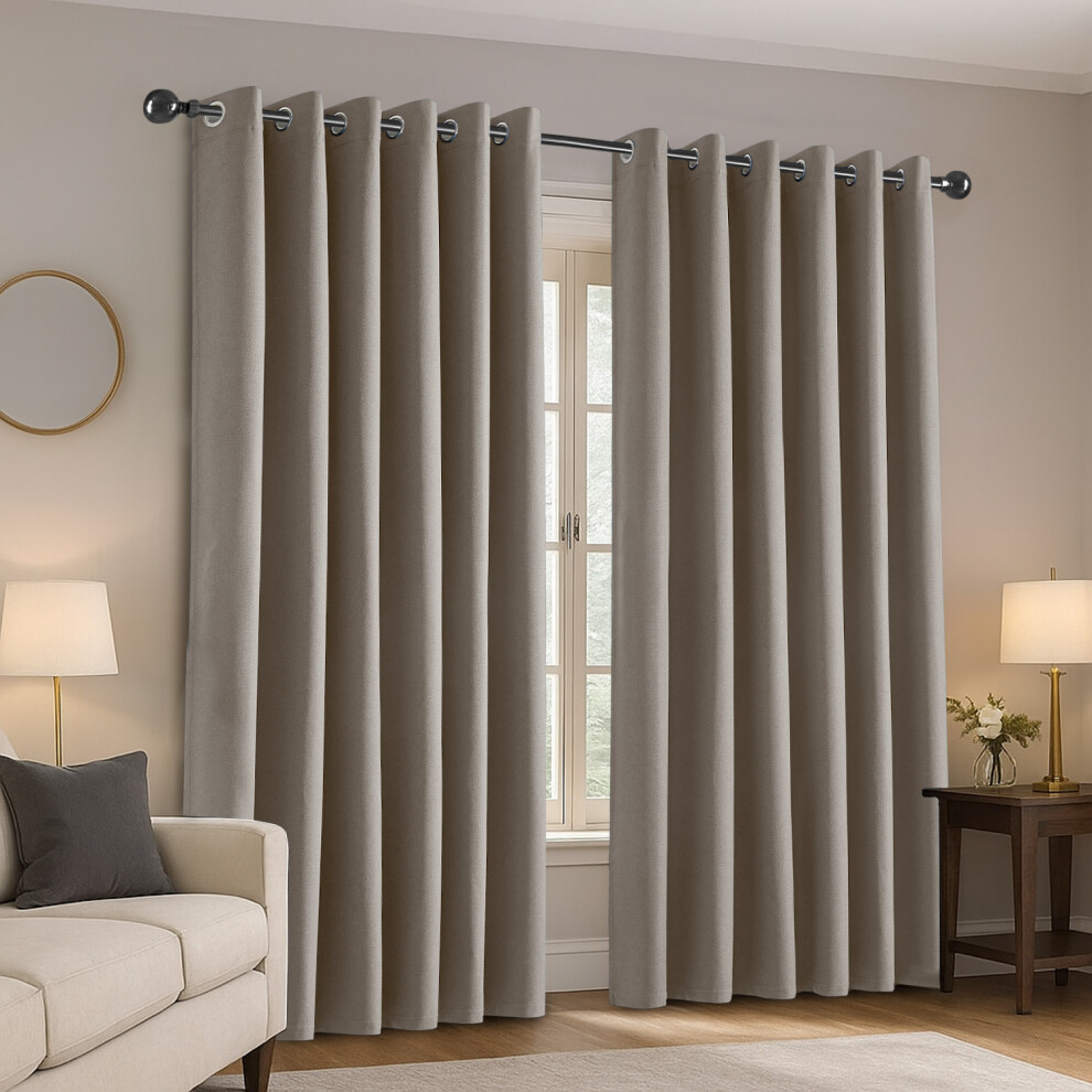 (46" x 54" (117 cm x 137 cm), Mink/Beige) 100% Blackout Linen Curtains Thermal Ring Top Ready Made Pair UK