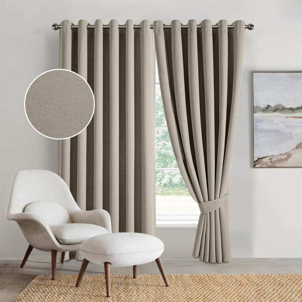 (66" x 54" (168 cm x 137 cm), Mink/Beige) 100% Blackout Linen Curtains Thermal Ring Top Ready Made Pair UK