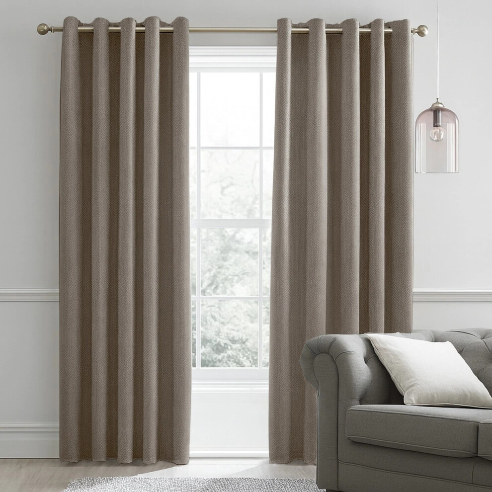 Catherine Lansfield Faux Suede Curtains Lined Eyelet Top 66x54" Mink Natural New