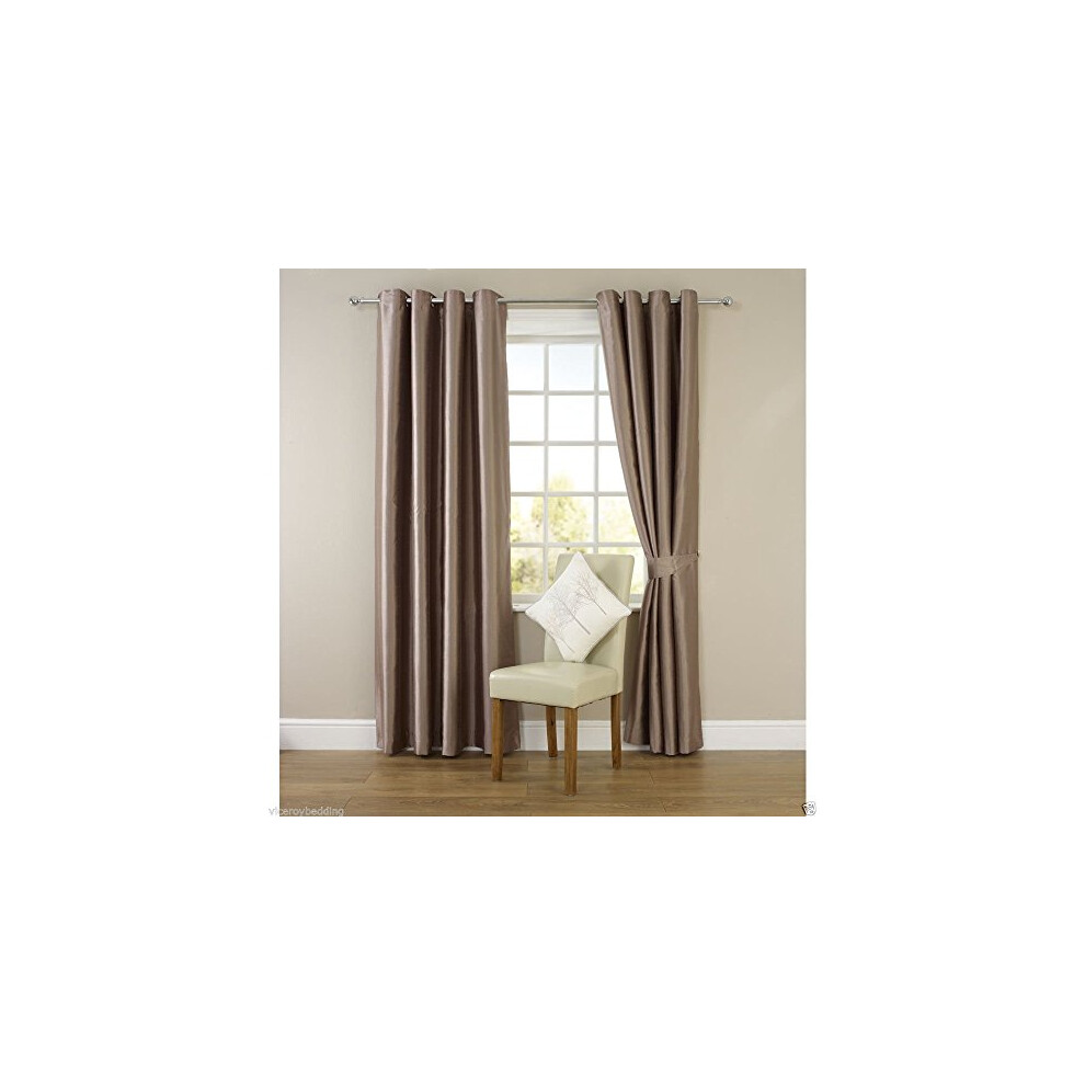 viceroy bedding Pair of MINK 66" Width x 54" Drop, Luxury FAUX SILK Eyelet Curtains INCLUDING PAIR OF MATCHING TIE BACKS
