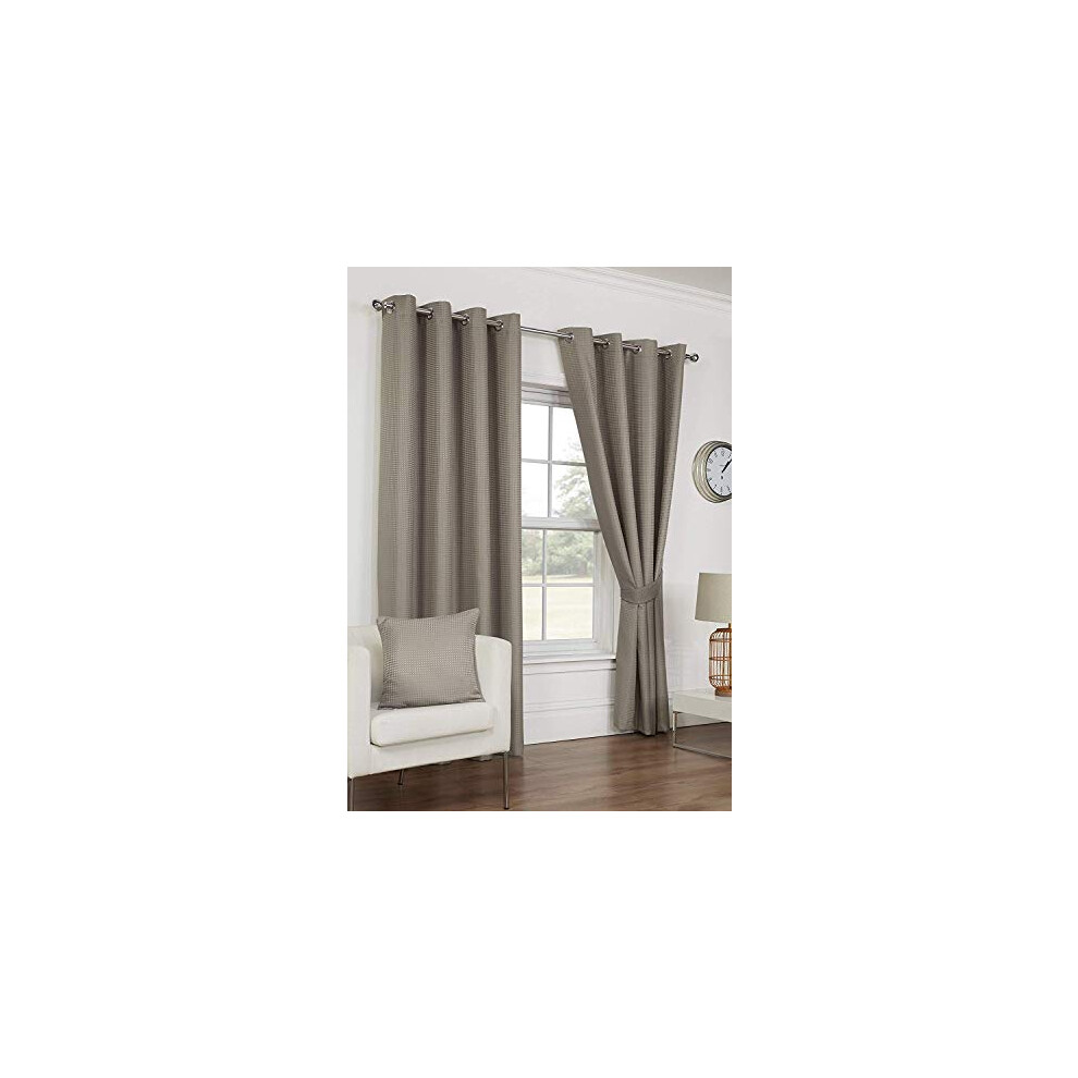 Ambiance Home 66" x 72" Waffle Taupe Eyelet Curtains, Lined Diamond Waffle Weave Effect, Dark Brown Mink