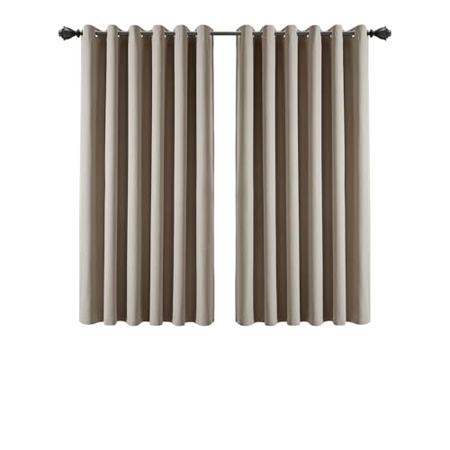 (Mink, 46" X 54" - (117cm x 137cm)) Thermal Insulated Curtains 100% Blackout Ring-Top Eyelet Curtain Panel with Tiebacks
