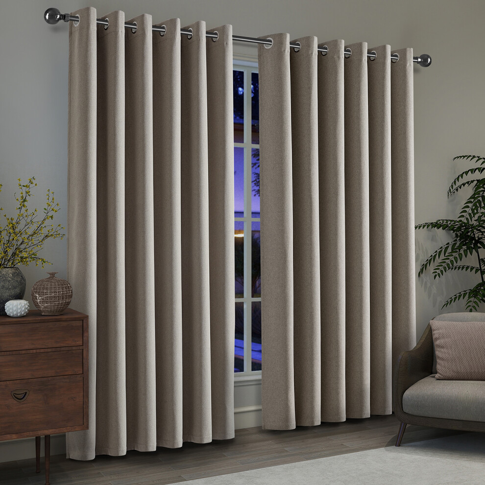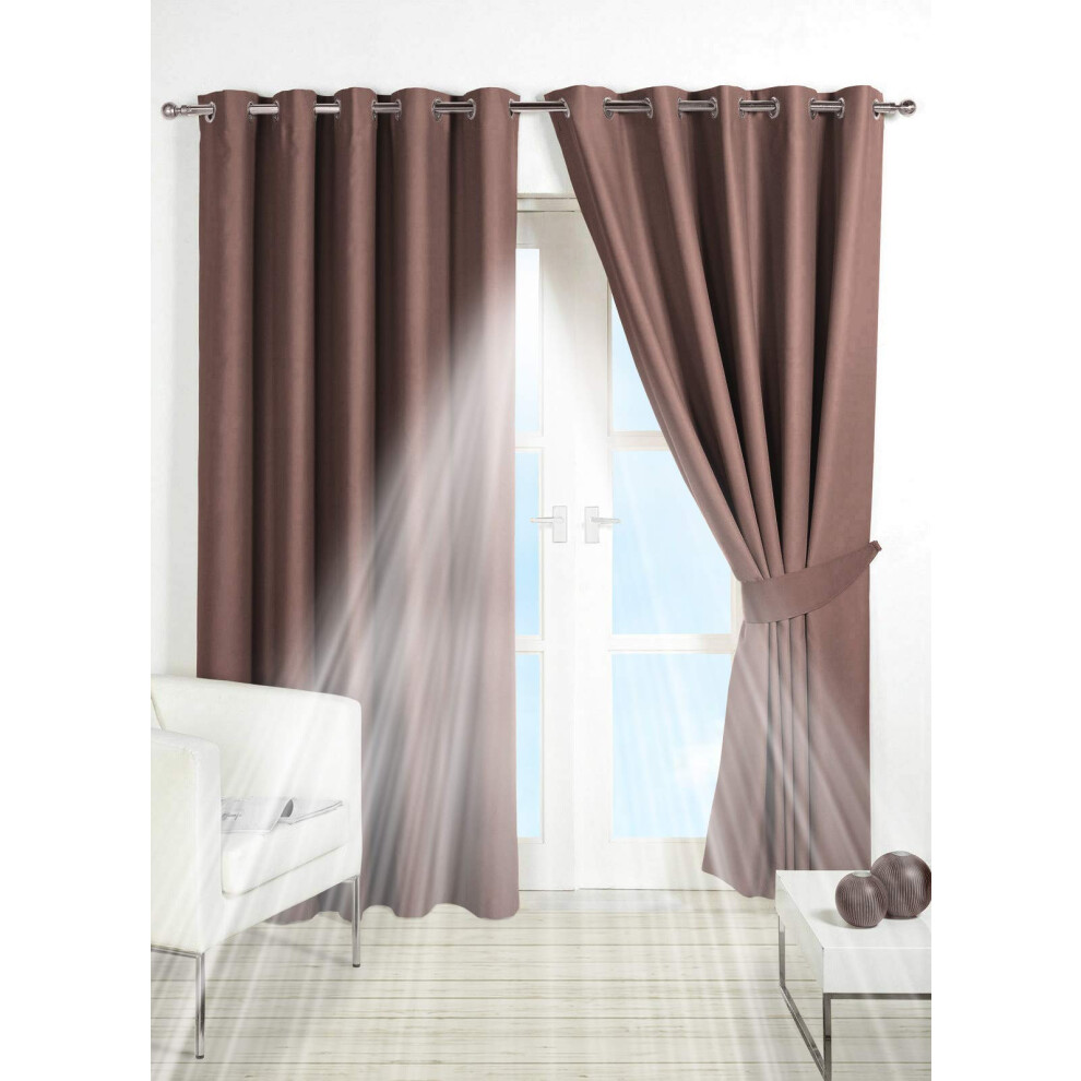 viceroy bedding Pair of MINK 90" Width x 54" Drop, Supersoft Thermal Blackout EYELET/RING TOP Readymade Bedroom Curtains Including Pair of Matching