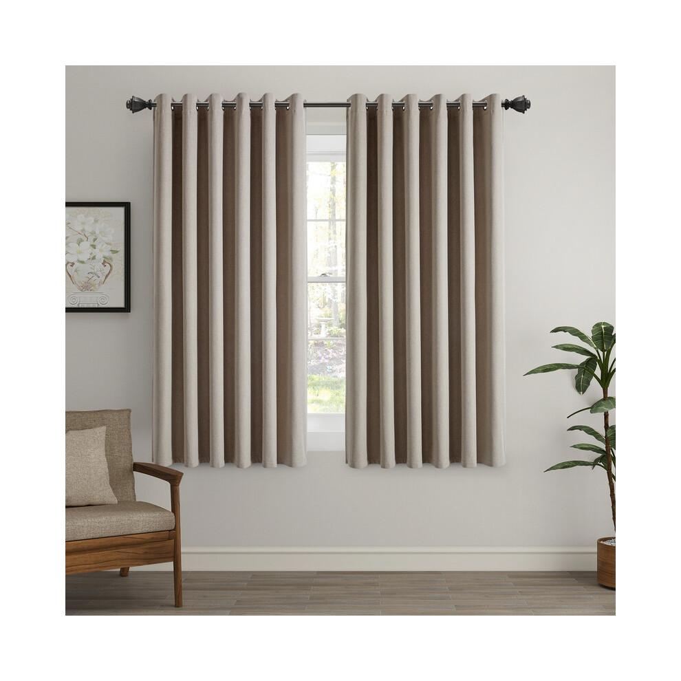 (46x54inch, Mink) 260GSM Thermal Blackout Linen Curtains with Free Tie Backs