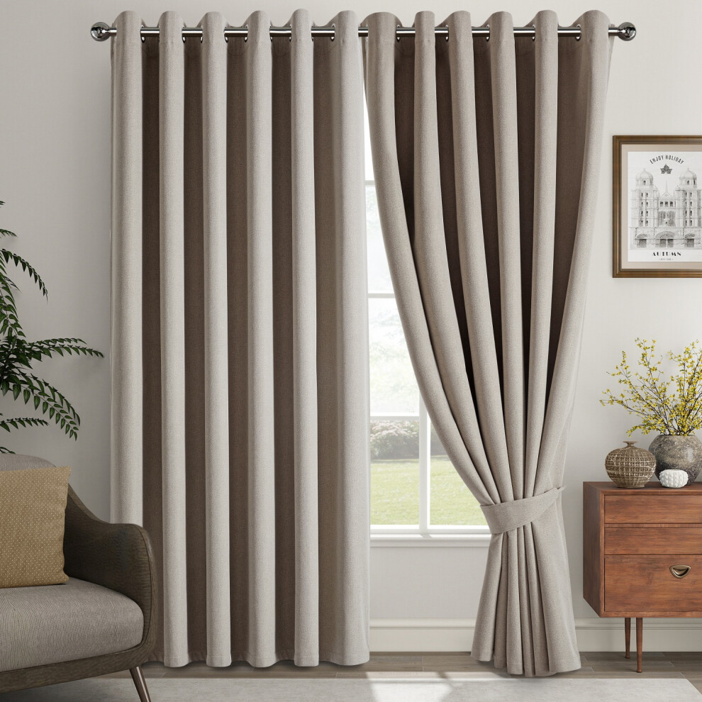 (66x72inch, Mink) 260GSM Thermal Blackout Linen Curtains with Free Tie Backs