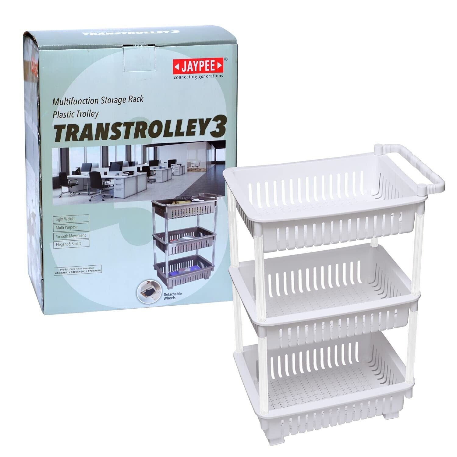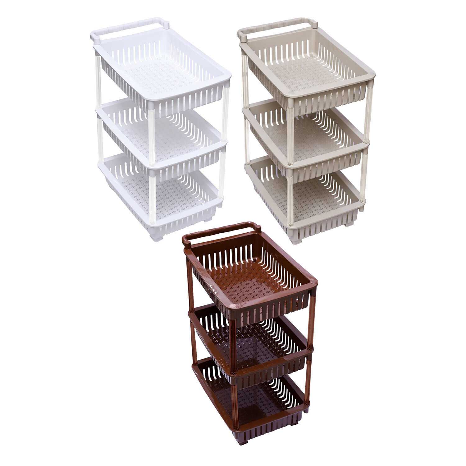 3 Tier White Trolley Basket with Wheel Kitchen Storage Organiser Vegetable
