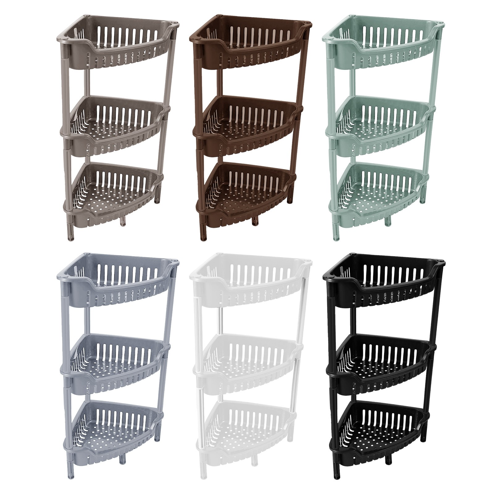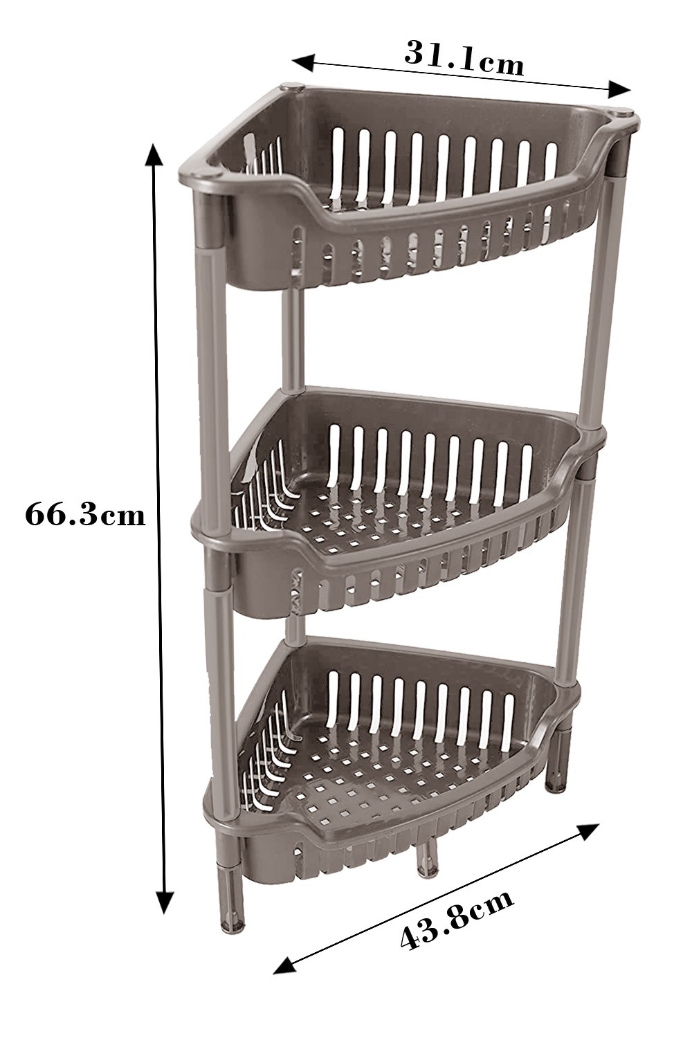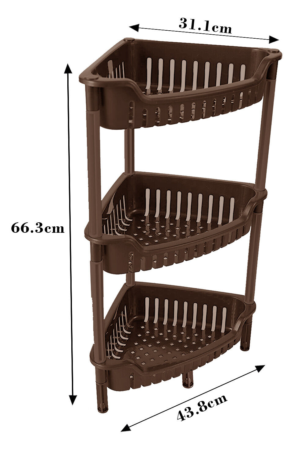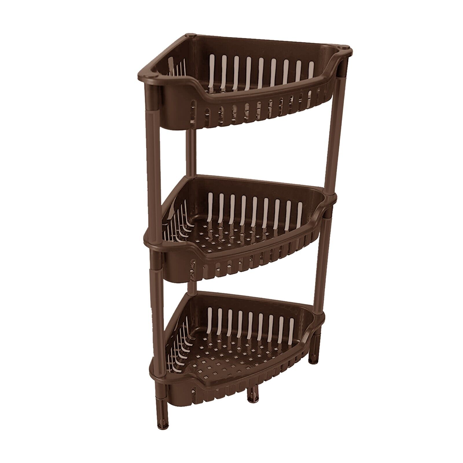 Plastic Corner Storage Shower Rack 3 Tier Shelf Organiser Kitchen Bathroom Brown