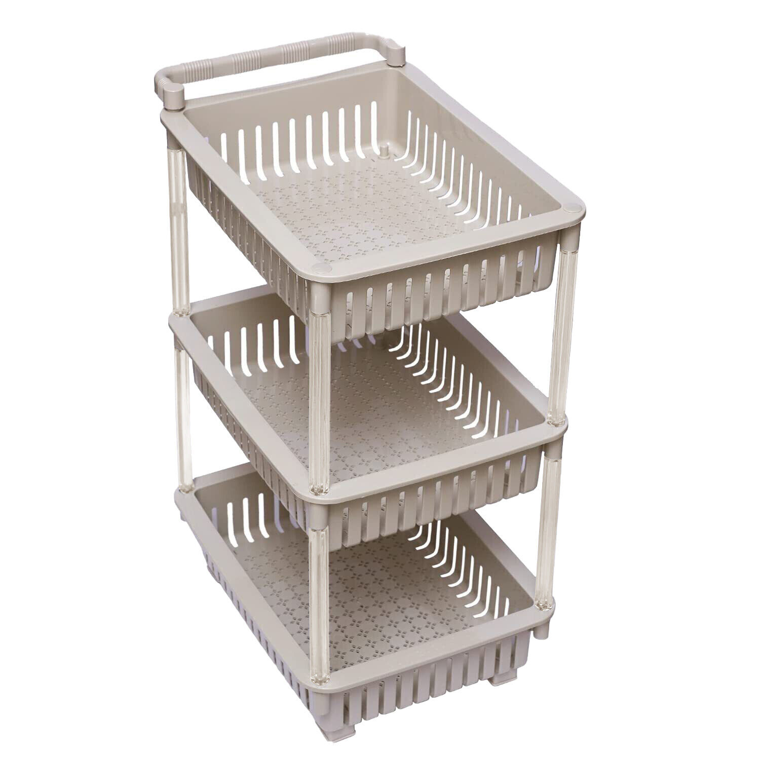 Trolley Basket 3 Tier Kitchen Storage Organiser Vegetable Rack on Wheels - Beige