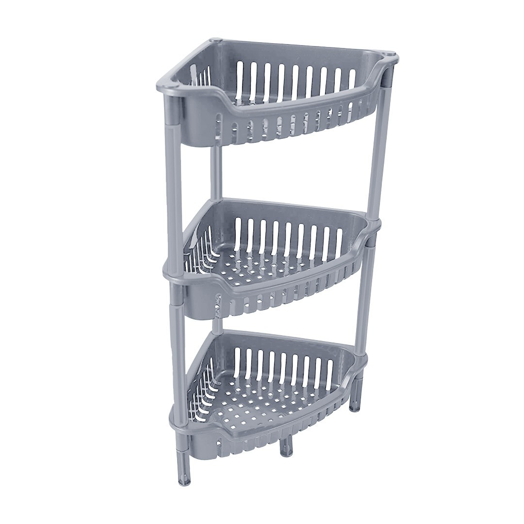 1 x Plastic 3 Tier Corner Pole Rack Kitchen Bathroom Shelf Storage Unit Random