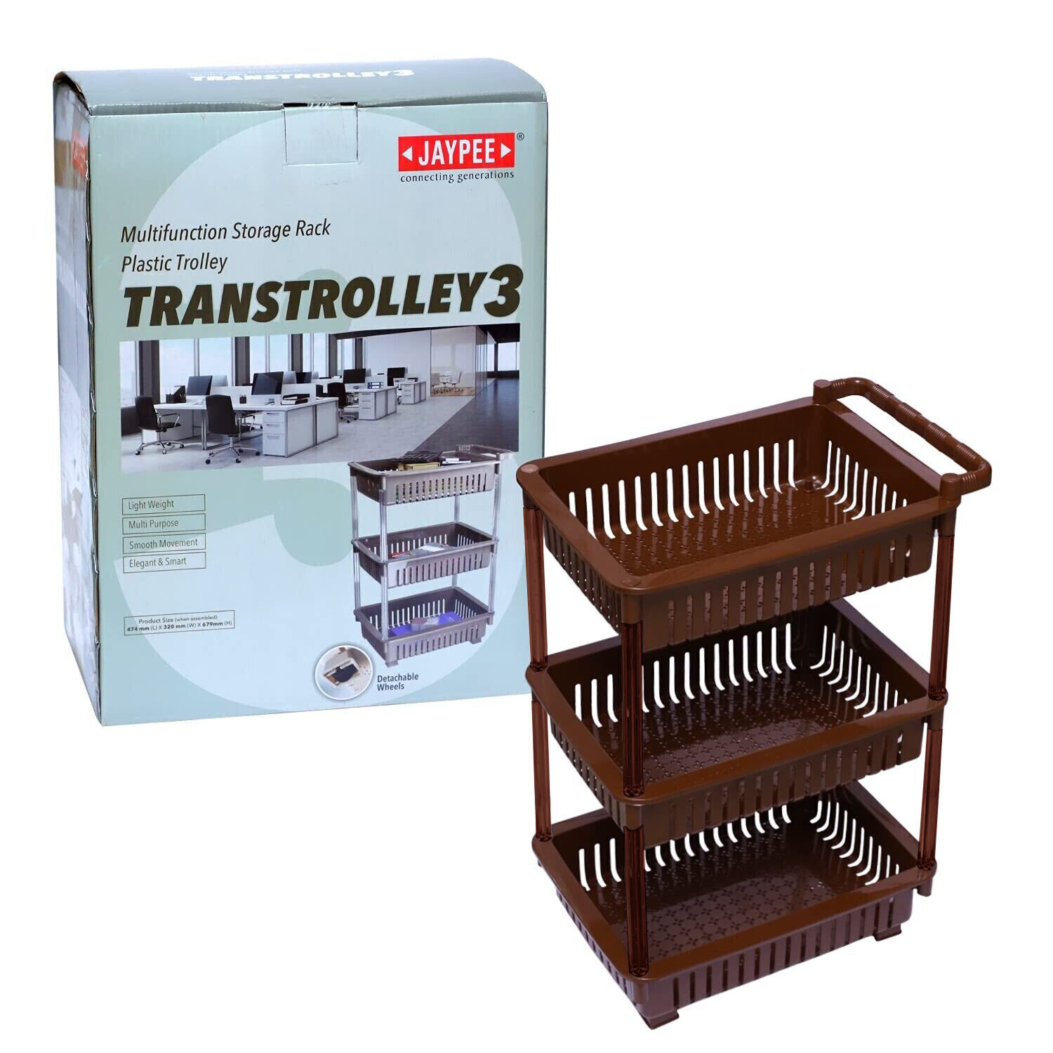 3 Tier Trolley Basket Kitchen Storage Organiser Vegetable Rack on Wheels - Brown