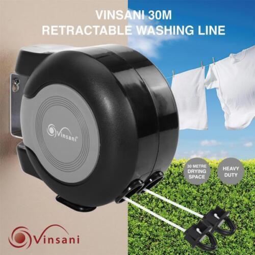 Vinsani Retractable Washing Line with Twin Cable - 30m Black
