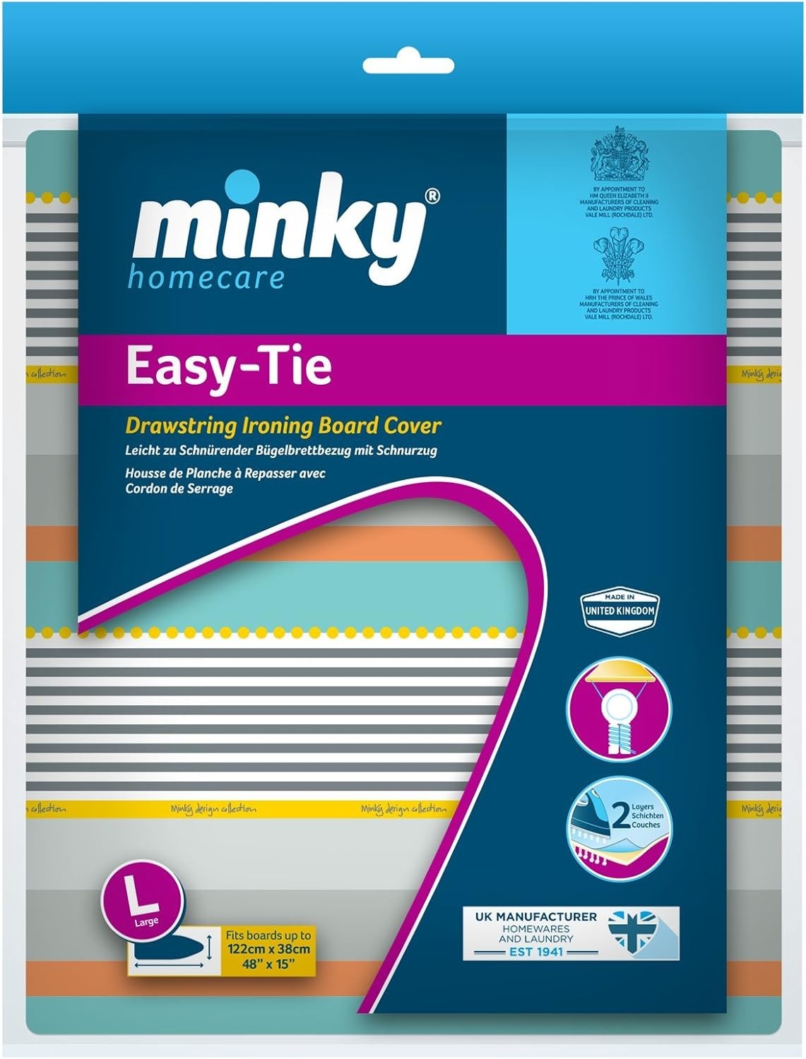 Minky Ironing Board Cover Smart Fit XL Fits Up To 145cm x 54cm Elasticated Asst