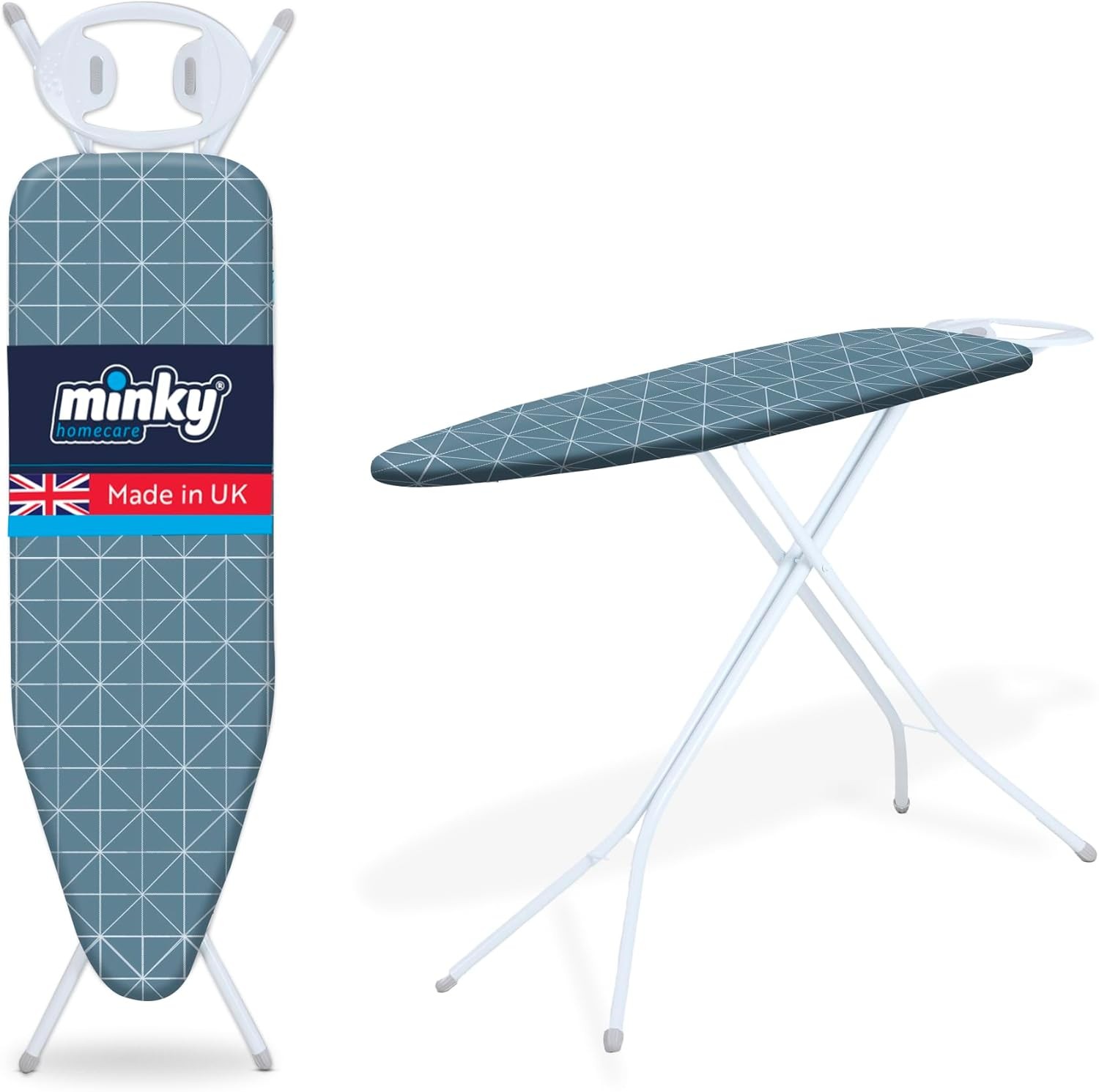 Minky Expert Blue Ironing Board | Large 122x38cm | Adjustable UK Made