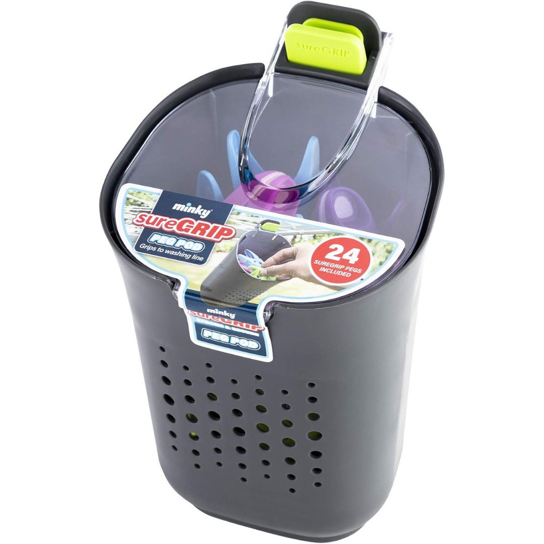 Minky Sure Grip Peg Pod Includes 24 Pegs Grips Washing Line Strong Secure