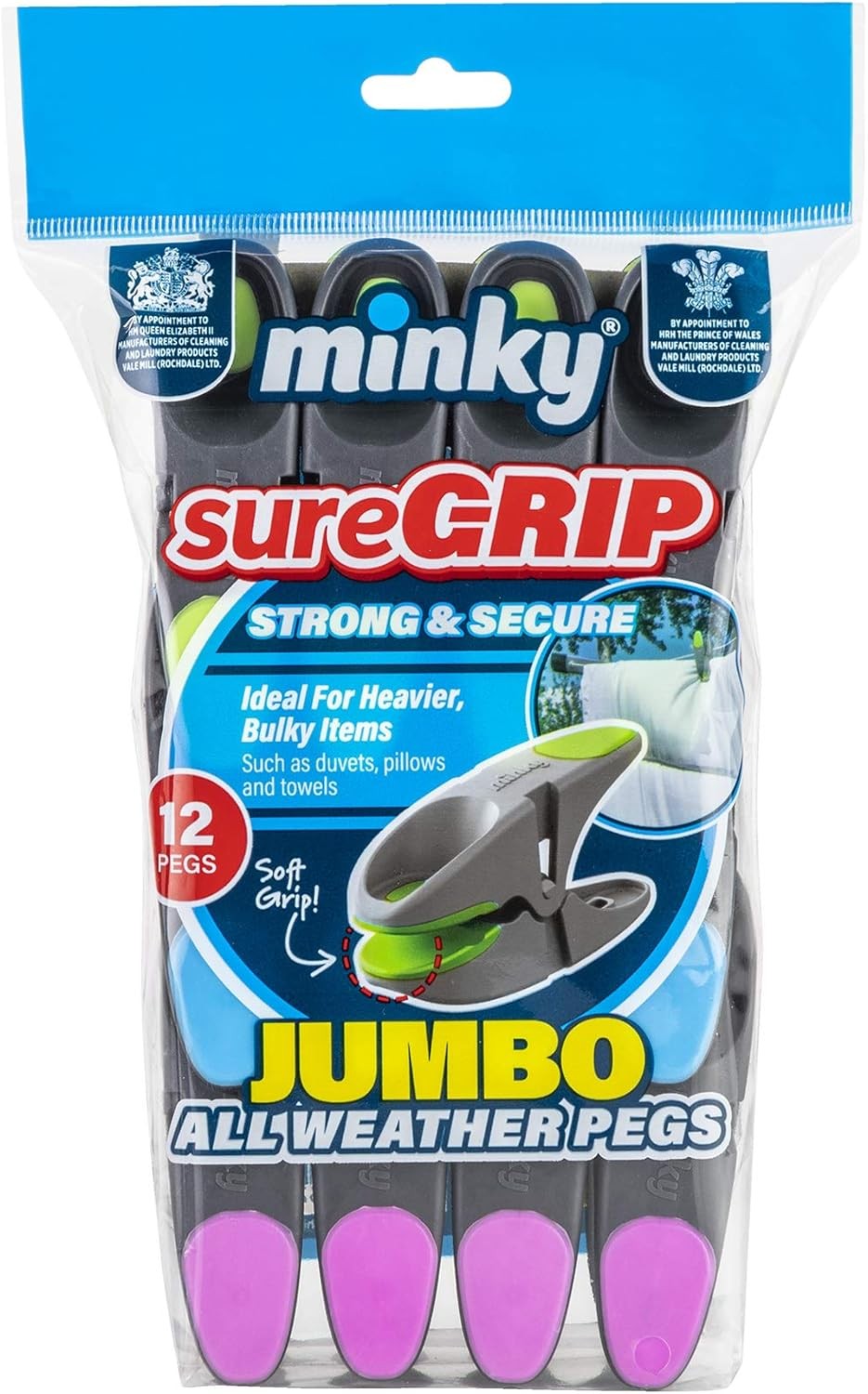 Minky 12 SureGrip Jumbo All Weather Soft Grip Pegs