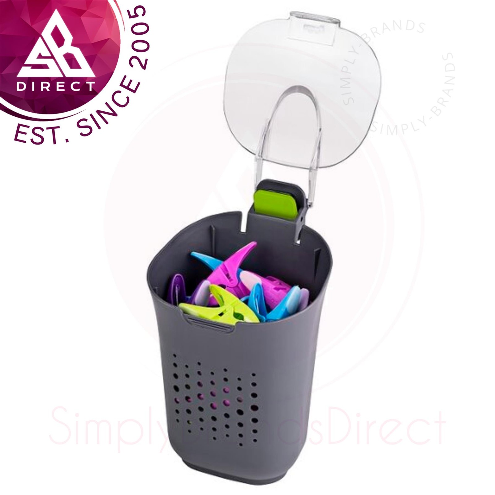 Minky Brite Peg Basket With 24 Soft Grip Clothes Pegs for Washing Line Laundry