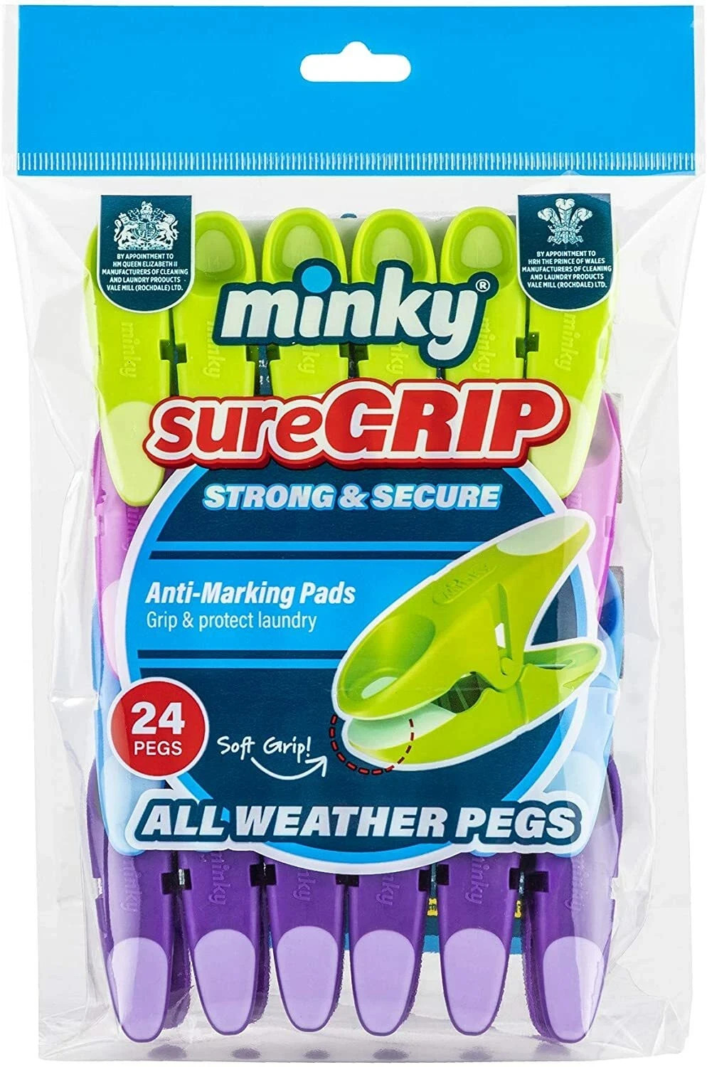 Minky Sure Grip Clothes Pegs 24 Pack Soft Grip Strong Hold for Washing Line