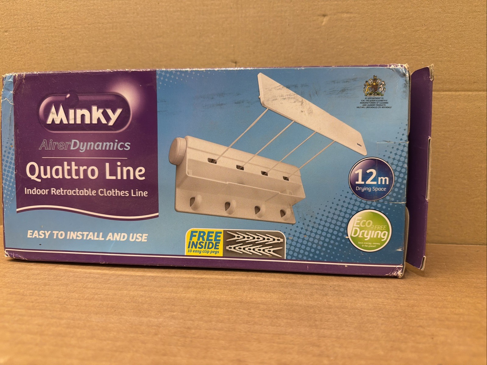 Minky Quattro Clothes Line with easy Clip Pegs - Indoor Retractable Clothes Line
