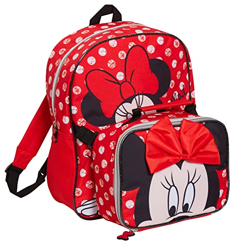 Disney Minnie Mouse Backpack with Lunch Bag Set - Bundle with 16" School Bag, Insulated Lunch Box, Stickers, Water Bottle, More | Minnie Mouse School Backpack for Girls