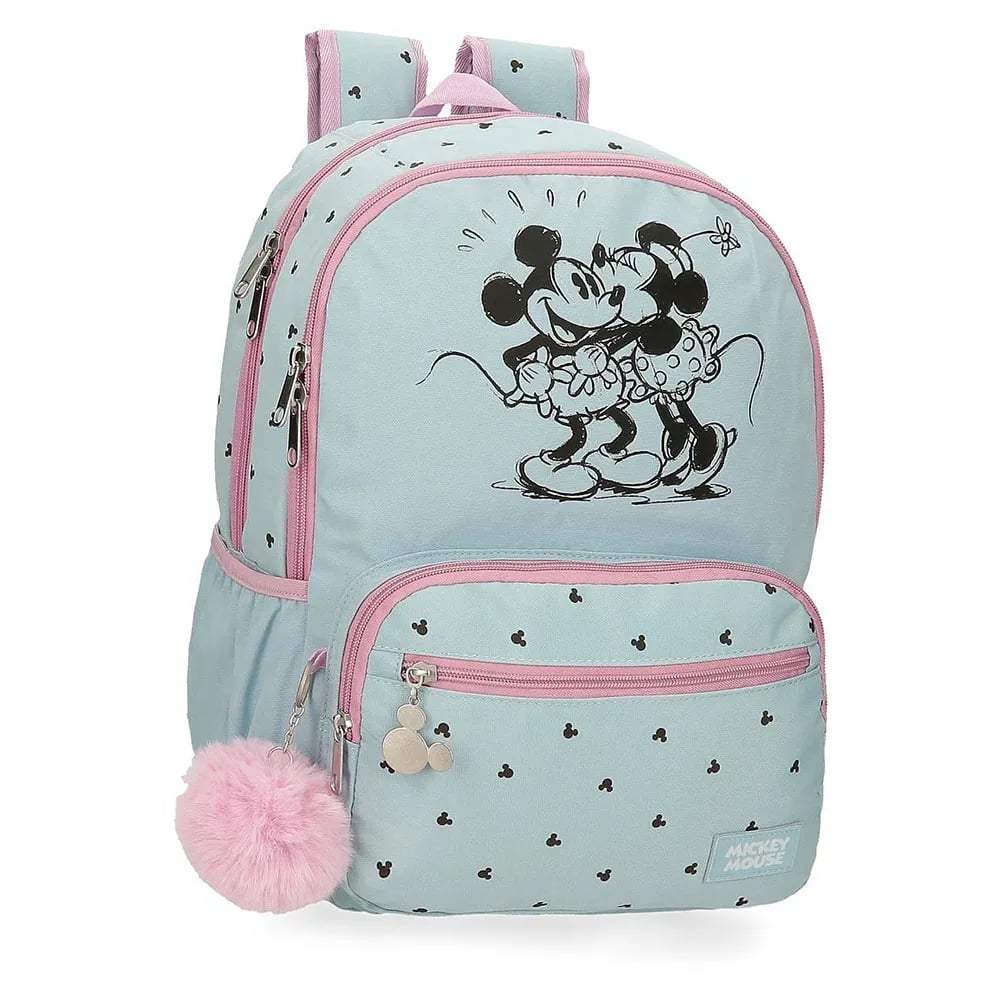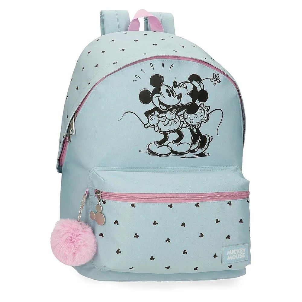Disney Joumma Mickey and Minnie Kisses Backpack Adaptable to Cart Blue 32x42x15cm Polyester 20,46L, Blue, Backpack Adaptable to Trolley