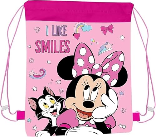 Top Linen (NW) Ltd Minnie Mouse Pull String Bag Childrens P.E Gym Shoe Swimming Kit Drawstring Bag For Kids, Pink, One Size (I Like Smiles)