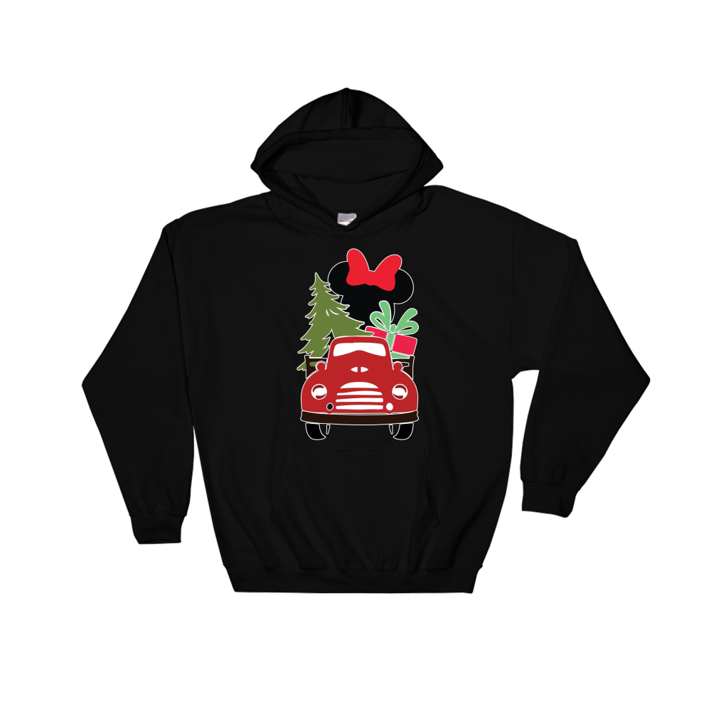 (X-Large, Black) Christmas Car Minnie Mouse Figure Black Men Women Unisex Hooded Sweatshirt Hoodie