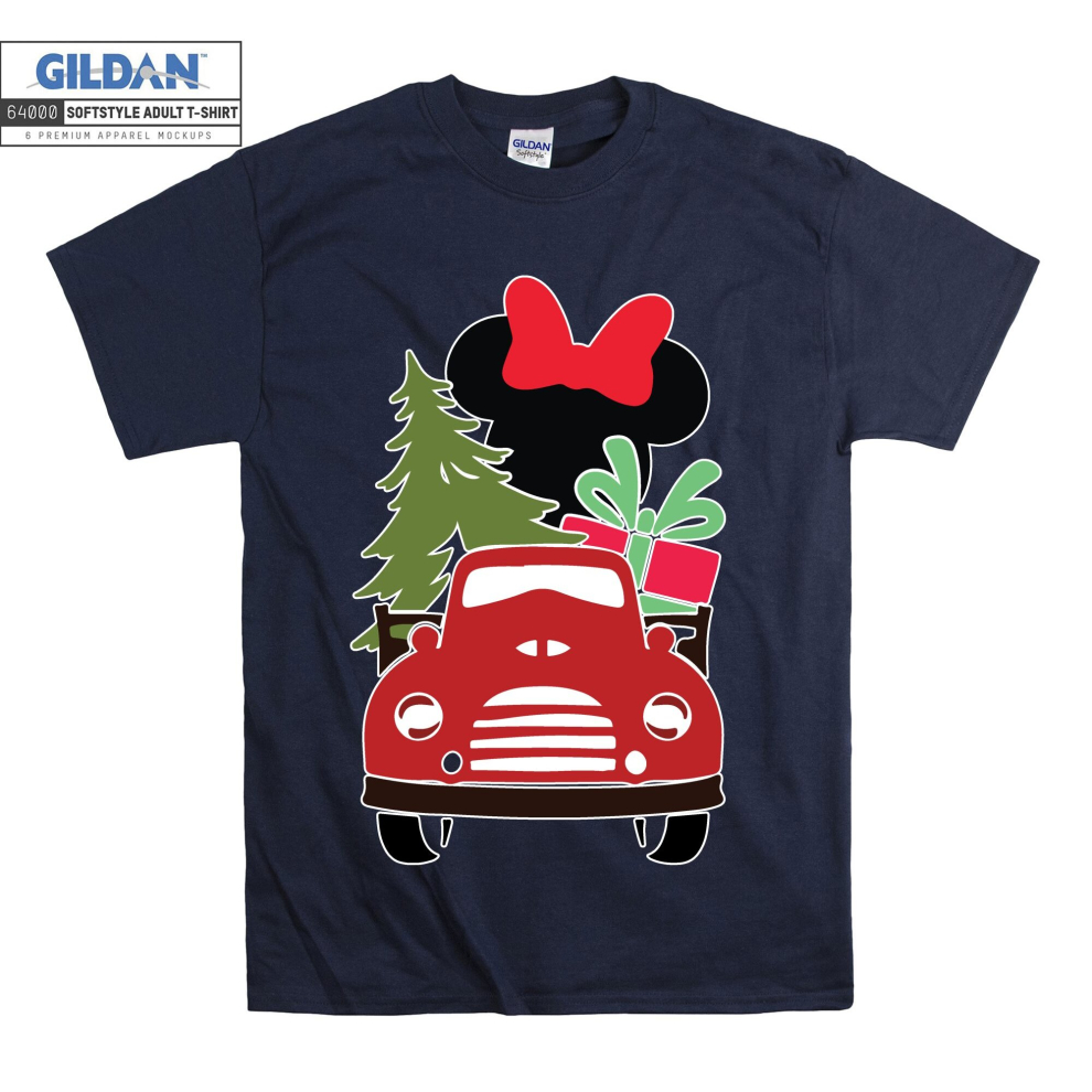 (XX-Large, Navy) Christmas Car Minnie Mouse Figure Men Women Unisex Top T Shirt T-Shirt Tshirt