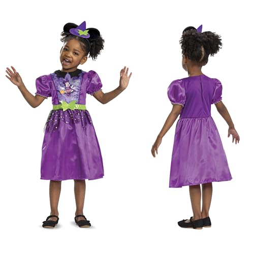 Disney Spooky Witch Minnie Mouse Fancy Dress for Kids & Toddlers, Official by Disguise, Adorable Witch Design Perfect for Halloween, Includes Witch Hat Minnie Headband, in Size 2 & 3-4 Years