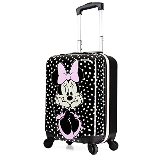 Disney Minnie Mouse Suitcase Hard Shell 49 x 33 x 22 30L Capacity 4 Spinner Wheels Extendable Handle Travel Essentials (Black, S (L49cm x W33cm - 30L)