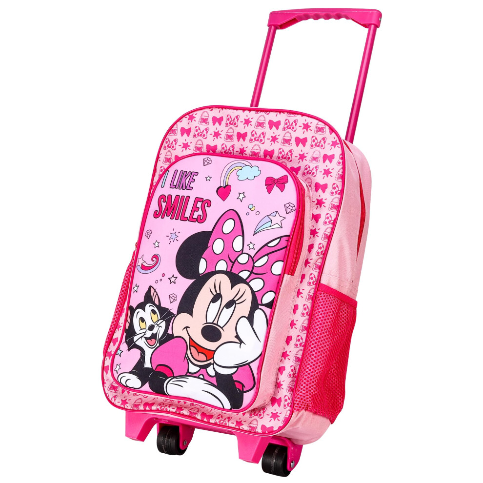 Minnie Mouse Deluxe Trolley Backpack Childrens Travel Bag Kids Character Luggage Carrier Suitcase with Side Mesh Pockets