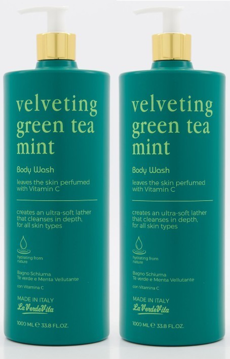 La Verde Vita Velveting Green Tea Mint Body Wash 1L x2 | Refreshing Moisturizing
