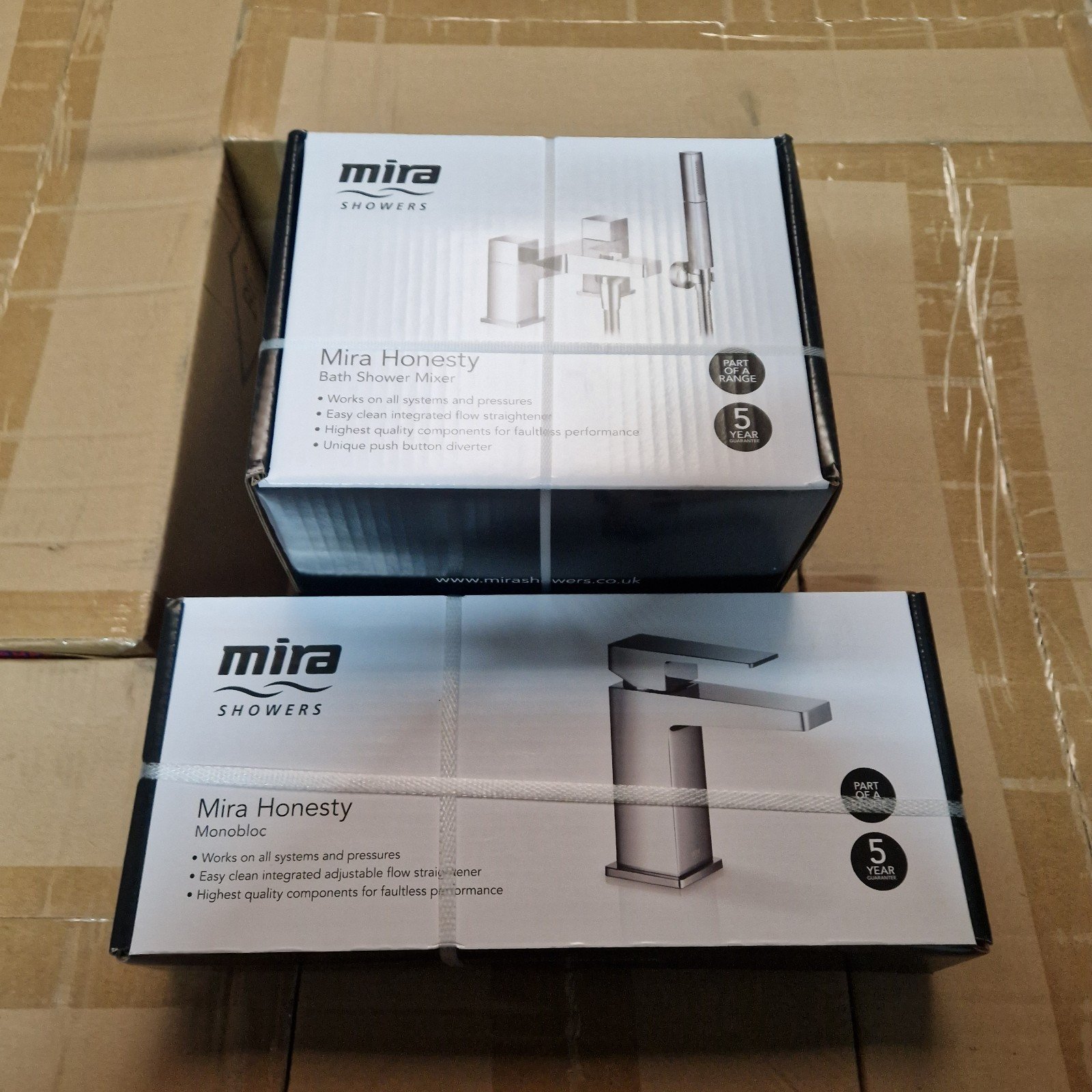 Mira Showers Honesty Square Bath Pillar And Single Lever Basin Chrome Taps
