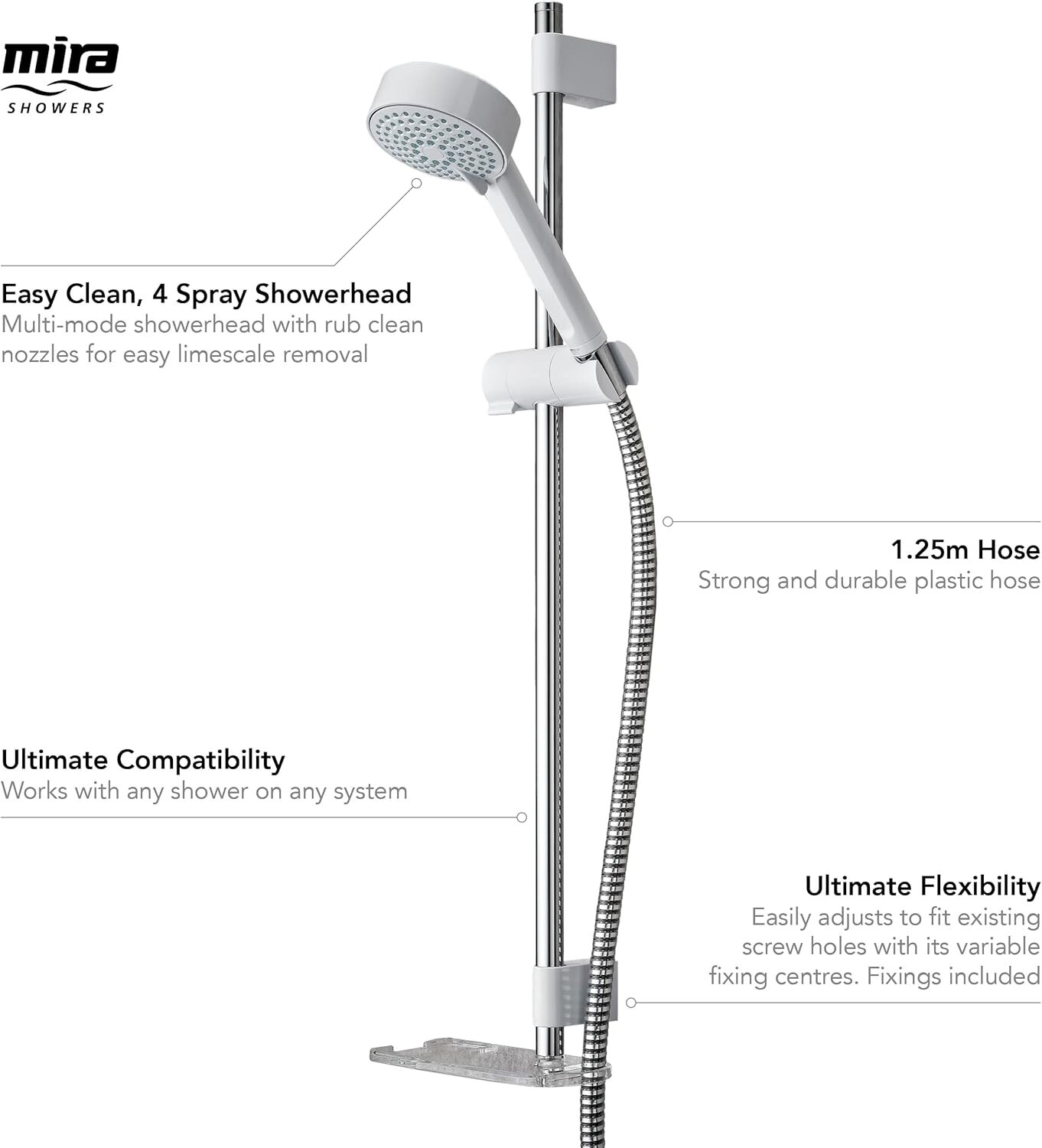 Mira Beat Shower Fittings Kit, Rail, Head & 1.25M Hose - White/Chrome 2.1703.015