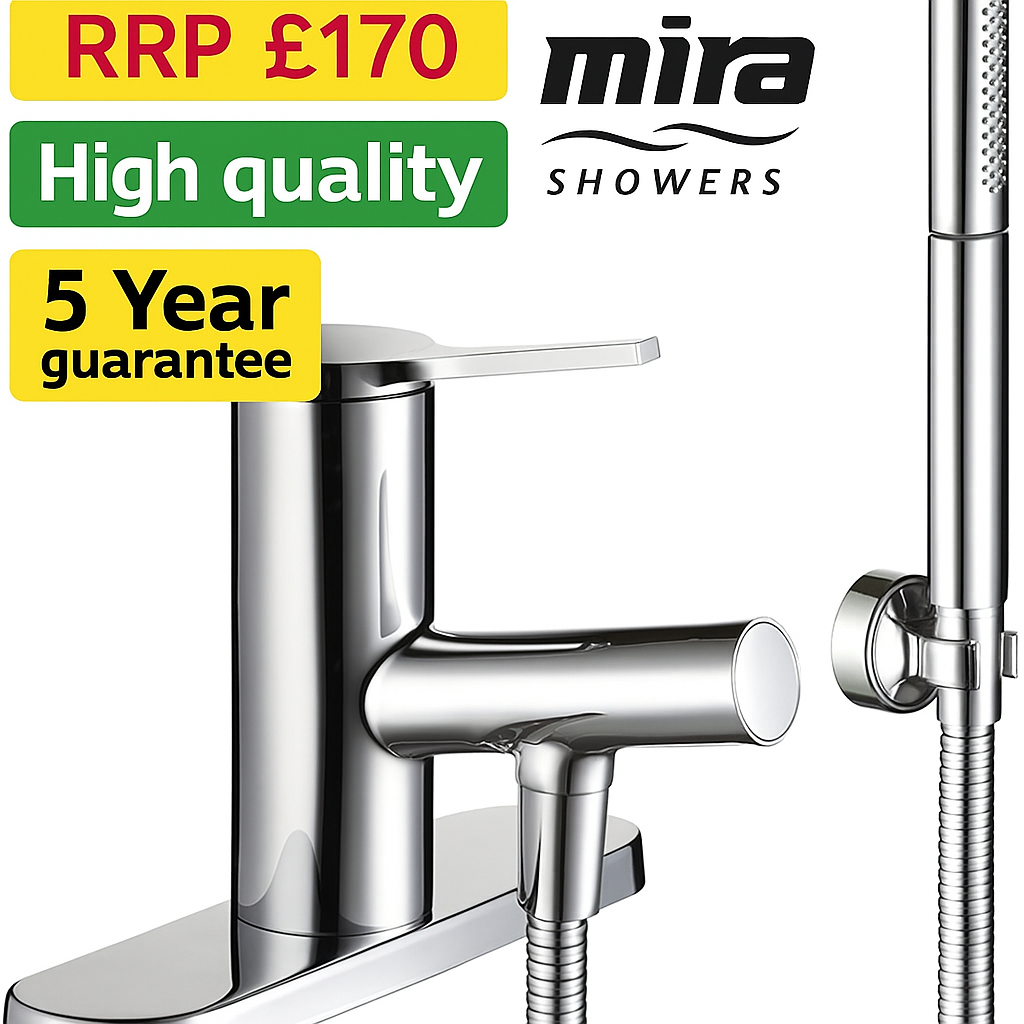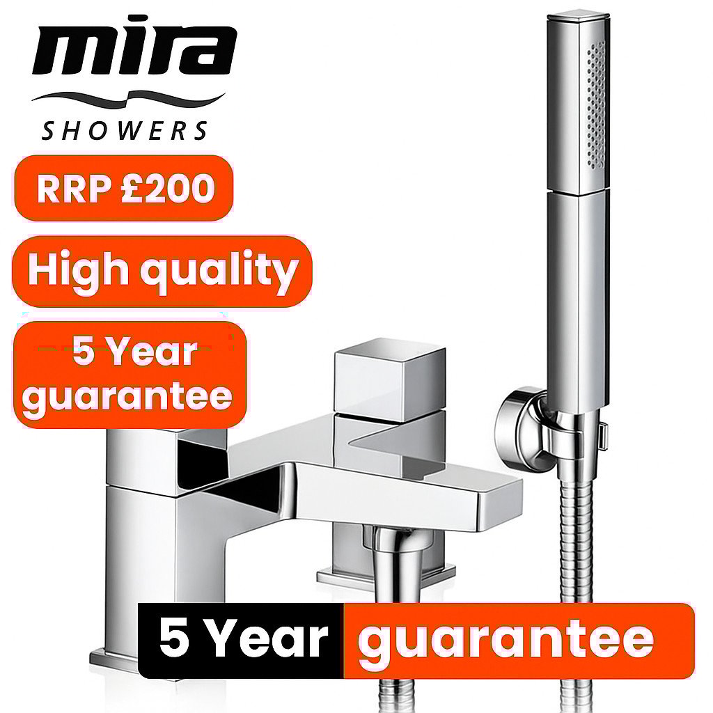 Mira Honesty Bath Shower Mixer Tap Square Chrome + Shower Head + Hose