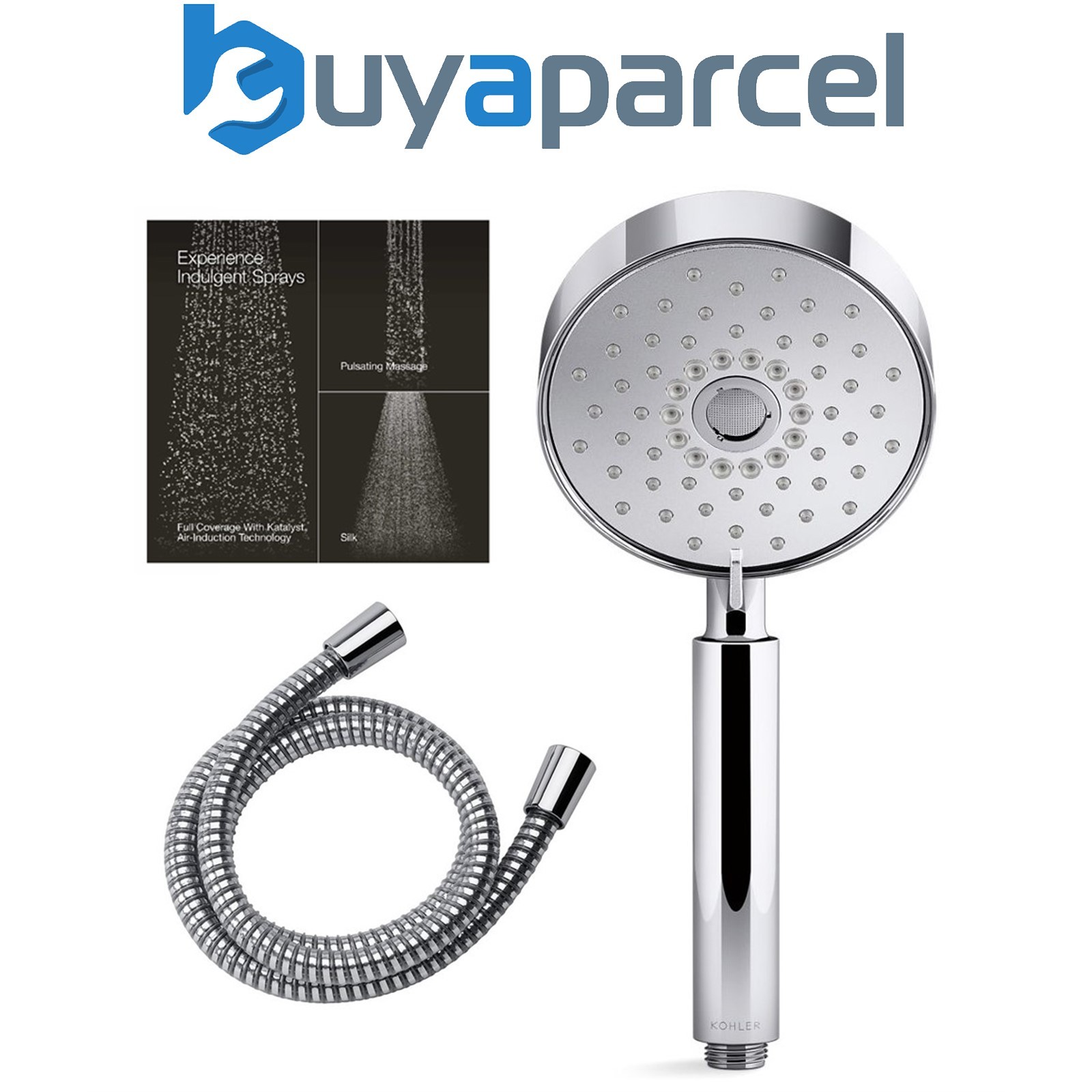 Kohler Purist 127mm Shower Head Chrome 4 Mode Handset + Mira Smooth Hose 1.25m