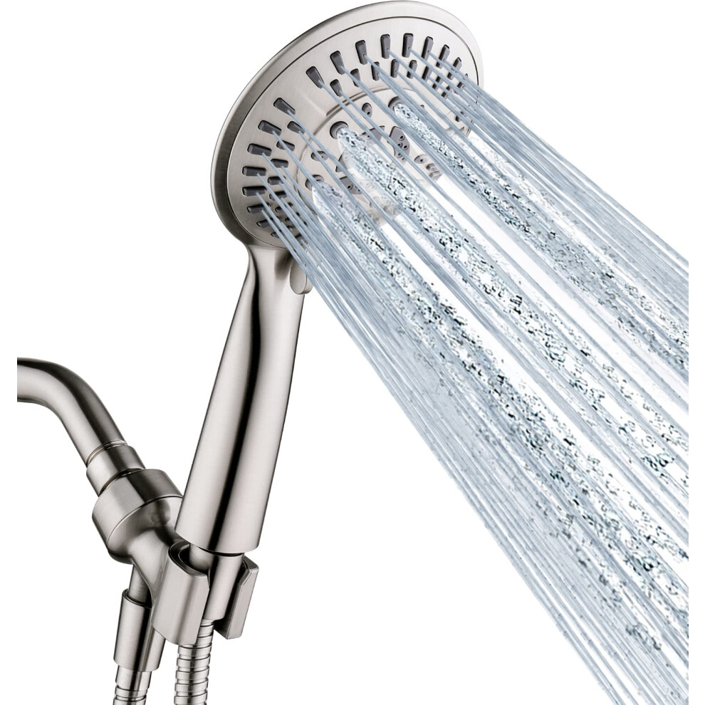 BRIGHT SHOWERS 9 Spray Settings Shower Head with Handheld High Pressure Brushed Nickel Hand Held Showerhead with 60 Inch Stainless Steel Hose and Adju