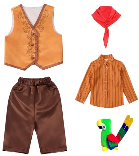 LCXYYY Antonio Costume for Kids Halloween Carnival Fancy Dress up Magic Madrigal Family Mirabel Cousin Antonio Vest Shirt and Pants and Parrot Doll Masquerade Party Boys Set Age 1-7 years