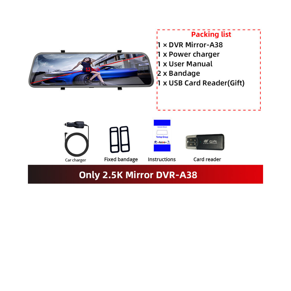 (Only Front Lens-A38, None) Dashcam 12 Inch Touch Screen Car Room Mirror Video Recorder Dash Cam For Cars DVR With Sony RearView
